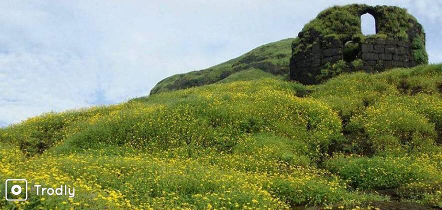 A 1000 years old temple of Lord Shiva, the Amruteshwar Temple at Ratanwadi, is an absolute paragon of high class architecture of our ancestors, is at the base of this fort. Ratangad has still the remains of fortress with bastions and stone walls. Caves on the top is cut from the rock face and can easily accommodate 25 people at a time. Water cistems are usually filled with water throughout the year and trekkers use them as water source. Eastern side of the fort has some fortification left; one can see Rani Mahal here. From the southern side on can see Katrabai and Ajoba fort very close. This side has also some fortification left, but most of it is damaged. Climbing up on the northern side, one can see natural orifice (hole in rock, locally called nedhe) in the rock face, mostly made by wind. Strong winds can be experienced at this orifice. Decend to the western end of the fort leads closest to the Khutta Pinnacle via Trimbak Darwaja.