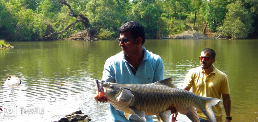 Valnoor, Coorg offers professional anglers a great place for Sportfishing. Mahasheer also known as the" Indian salmon”, 'Fish of the Gods' & King off All Fishes' is one of the rare species of game fish found here. Varieties of other species can also be found like the Marals and Mapps. A large Mahasheer may weigh between 30 - 35 kgs. Fishing can be done for the duration of 3 to 4 hours a day. The valnoor fishing camp lies in the backwaters of River Cauvery River and is set amongst thousands of acres of coffee plantations and wild forest. The flow in these upper stretches is at a slower pace.