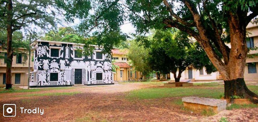 - Kala Bhavana, the college of fine arts and crafts, houses a museum exhibiting sculptures, frescoes and murals, as well as a library of art books