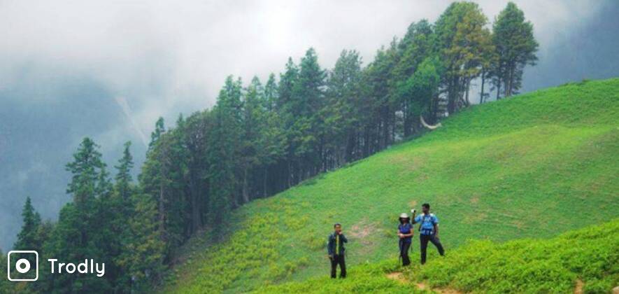 - The trek starts and you traverse the meadows on the last day of the trek, back descending towards Sangchur.