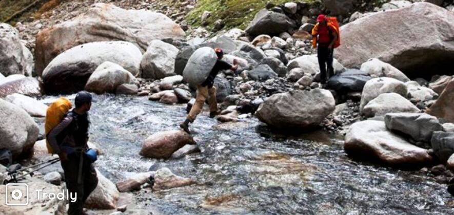 - After 10 minutes you will take a detour from the main trail ( the trail through which you came) and take the trail right of you. Your campsite can be located from here but will take a couple of hours from this place. A 200 m/650 ft of descent takes us to the bed of a stream. We gradually follow a stream down and cross to its left bank.